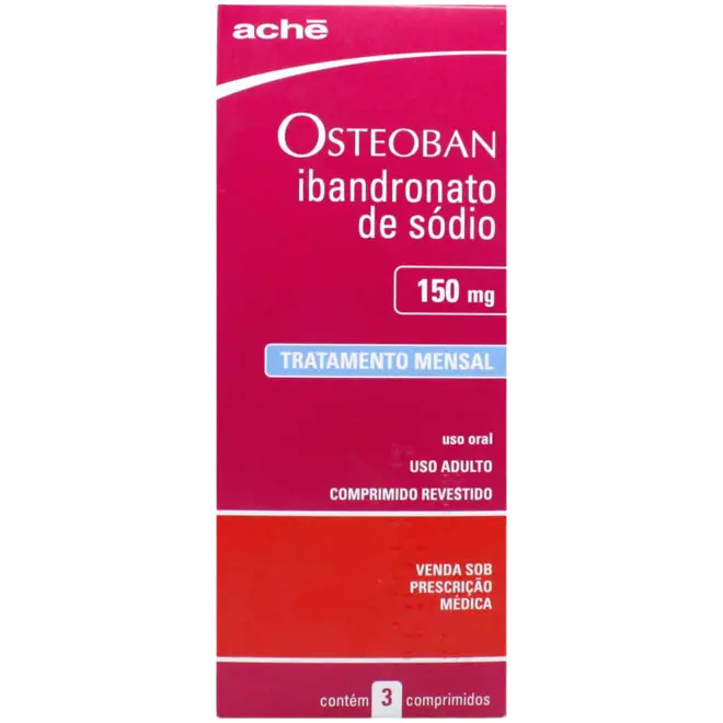 Osteoban 150mg com 3 comprimidos é um medicamento à base de ibandronato de sódio, pertencente à classe dos bisfosfonatos, indicado principalmente para o tratamento e prevenção da osteoporose em mulheres pós-menopausa. Sua principal ação é inibir a reabsorção óssea, promovendo o fortalecimento dos ossos e reduzindo o risco de fraturas, especialmente nas vértebras e quadril.