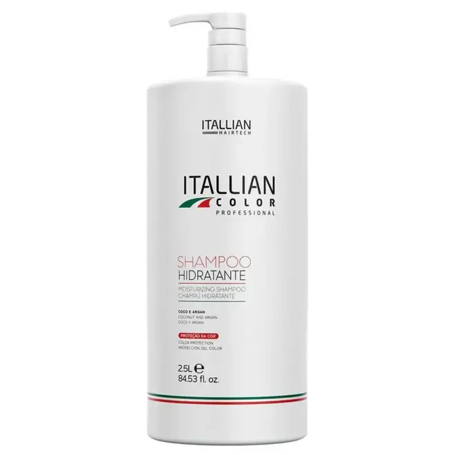 O Shampoo Hidratante Itallian Color oferece nutrição profunda e proteção contra o ressecamento, controlando o frizz e promovendo brilho, maciez e hidratação aos fios. Contém um blend de 12 óleos preciosos (como coco, argan, camomila e oliva) que nutrem as camadas internas do cabelo, e proteína da seda, que proporciona brilho intenso, umectação e emoliência. Indicado para todos os tipos de cabelo, rende mais de 180 aplicações. Uso profissional recomendado.